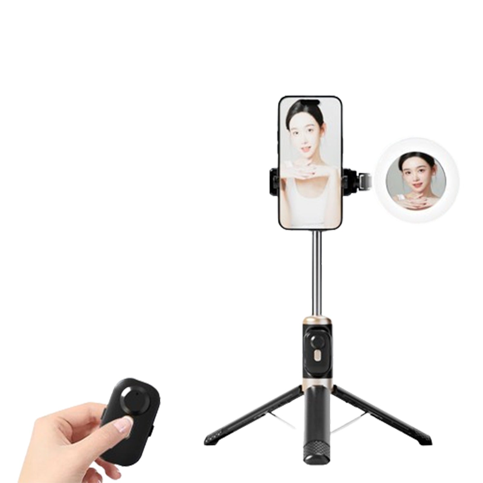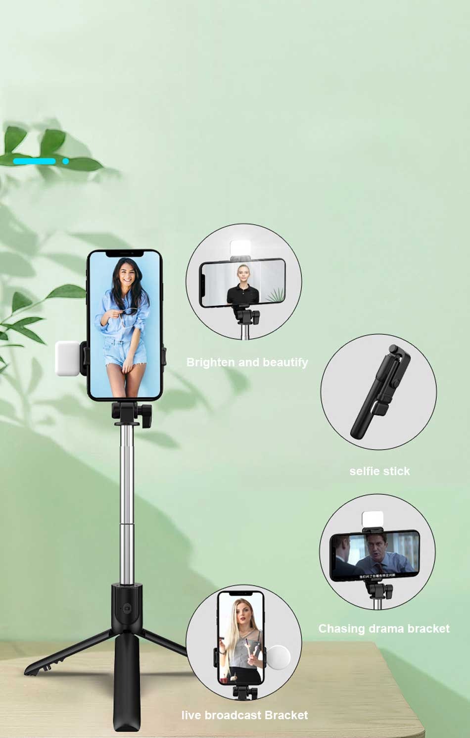 Product details of Best 4 in 1 Wireless Selfie Stick R1S (With Light ) R1 (Without Light) Tripod with Bluetooth Shutter selfie Light foldable Selfie stick for all Phone Extendable 70CM