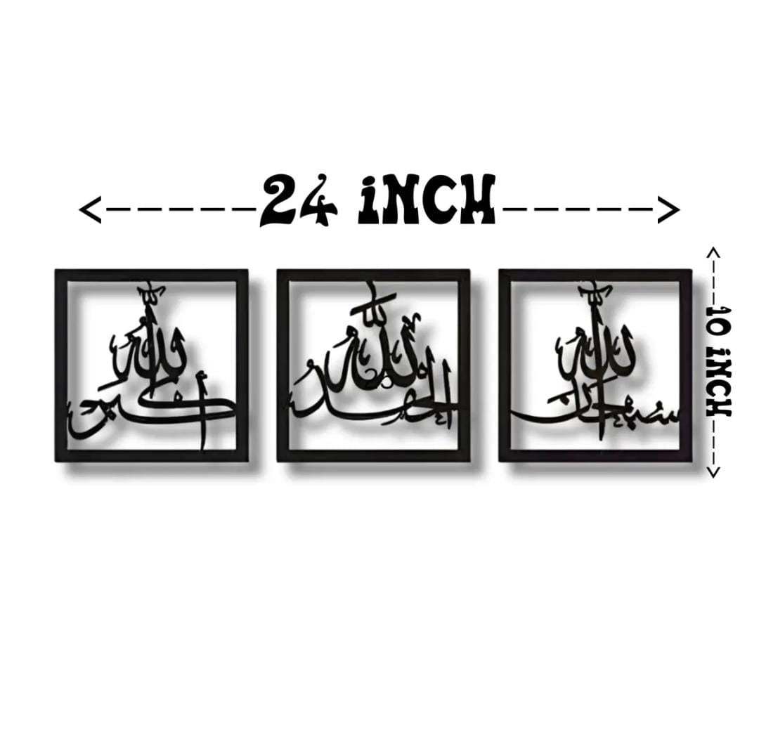 Material :- MDF WoodenColor :- BlackType:- Modern Design Thickness :- 3mmDimensions:- Each Frame Size is 10H & 8W inches, total size after installation is 24 * 10 inches big size on wallRoom Decoration Items, Wall Art ,New Wall Art Design